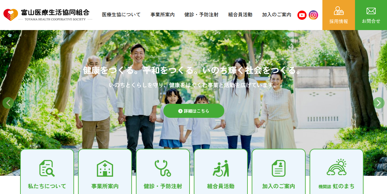 富山県富山市の「富山医療生活協同組合 」様のホームページ制作を行なわせていただきました。 更新しやすいCMSシステムを導入させて頂いております。